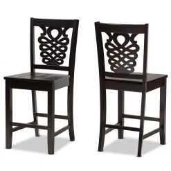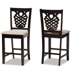 Gervais 42.5 in. Sand and Dark Brown Low Back Wood Counter Height Bar Stool by Baxton Studio