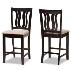 Fenton 42.5 in. Sand and Dark Brown Low Back Wood Counter Height Bar Stool by Baxton Studio