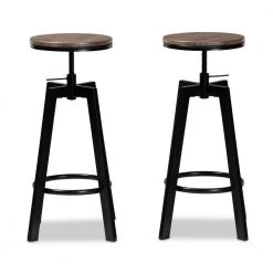 Maritta 29.5 in. Walnut and Black Adjustable Swivel Bar Stool (Set of 2) by Baxton Studio