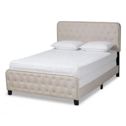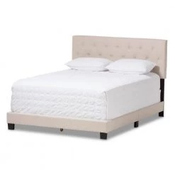 Cassandra Beige Fabric Upholstered Full Bed by Baxton Studio