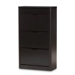 Bosley Dark Brown and Beige Storage Cabinet with 4-Baskets by Baxton Studio