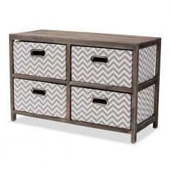 Jorah Grey and White Storage Cabinet with 4-Baskets by Baxton Studio