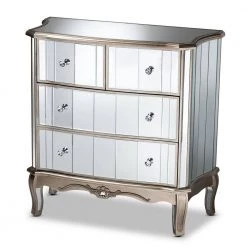 Leah Whitewashed Brown and Mirrored Storage Cabinet by Baxton Studio