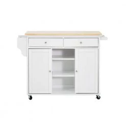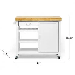 Yonkers Gray Kitchen Cart with Natural Wood Top by Baxton Studio