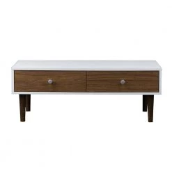 Adal 38 in. Walnut/White Medium Rectangle Wood Coffee Table with Drawers by Baxton Studio