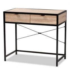 Grayer 33.1 in. Natural Brown and Black 2-Drawer Writing Desk by Baxton Studio