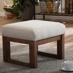 Yashiya Mid-Century Beige Fabric Upholstered Ottoman by Baxton Studio