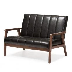 Nikko 44.7 in. Black Faux Leather 2-Seater Loveseat with Wood Frame by Baxton Studio