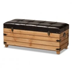 Edmund Dark Brown and Oak Brown Storage Ottoman by Baxton Studio