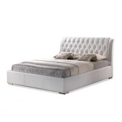 Bianca Transitional White Faux Leather Upholstered Queen Size Bed by Baxton Studio