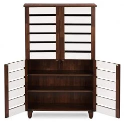 Leah Whitewashed Brown and Mirrored Storage Cabinet by Baxton Studio