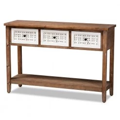 Adal 38 in. Walnut/White Medium Rectangle Wood Coffee Table with Drawers by Baxton Studio