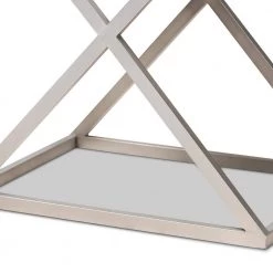 Clean lines meet industrial metalwork in the William nightstand. Made in China, the William is fitted with one drawer and a rectangular tabletop for all the bedside necessities. This piece is constructed from metal and is supported by crisscross legs, providing a unique marriage of retro design and metal craftsmanship. Fully assembled, Silver PU leather edges and a black PU leather handle highlight the William’s striking look. Accentuated with metal studs, the William adds a distinct appeal to any bedroom.