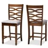 Superb comfort outfitted in contemporary style distinguishes the Jason bar stool. Made in Malaysia, the Jason is crafted from wood in a traditional square frame. The bar stool is fitted with a foam-padded seat underneath a smooth layer of fabric and features a sleek cut-out design on its back. This piece requires assembly and is finished in a warm walnut brown that complements the lighter tones of the fabric. Sturdy silver metal is fitted on the front footrest, making the Jason bar stool well suited for both commercial and residential settings.