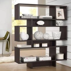 Inject a boost of dazzling contemporary interior fashion into your living space: our Cassidy designer shelf is a sculptural, eye-catching piece sourced from Malaysian craftsmen. Made with smooth dark brown faux (Espresso) wood grain paper veneer, the Cassidy shelf features an engineered wood frame built with 6 levels, 5 of which can be used for display of your decor collection. Dusting with a dry cloth is recommended for cleaning of this unit. A 4-level and 8-level option of the Cassidy shelf are also available (each sold separately). Assembly is required.