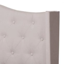 Have the bedroom or guest room of your dreams with the Alesha bed. The modern and contemporary-inspired design is evident in the clean lines and chic details of the bed. The Alesha’s frame is built to last with engineered wood and rubberwood. The feet of the bed are finished in black, complementing the neutral fabric upholstery of the frame and headboard. The headboard of the Alesha features a curved design with wings and buttons for an eye-catching look. The Alesha is made for use with a box spring and mattress. Made in Malaysia, the bed requires assembly.