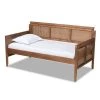 Create the chic, modern bedroom of your dreams with the Alke bed. Built with a sturdy wood frame, the Alke features a low platform finished in a warm walnut brown. The headboard is upholstered in a soft, foam-filled fabric set within a wooden frame for a tailored look. Biscuit tufting lends dimension and elegance, while splayed legs create a cool, retro profile. The Alke bed is made in Malaysia and requires assembly.