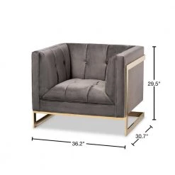 Elevate your living space with the striking glamour of the Ambra armchair. This tailored armchair features rows of channel tufting that accentuate the subtle sheen in the soft velvet fabric upholstery. Button tufting and piping add a touch of refinement. The armchair rests on a stunning gold-tone stainless steel frame, providing an open, airy ambiance. Designed for both style and comfort, the Ambra is generously padded with foam to provide a truly luxurious feel. Pair this armchair with the Ambra sofa to complete the look. The Ambra armchair is made in China and will arrive fully assembled.