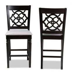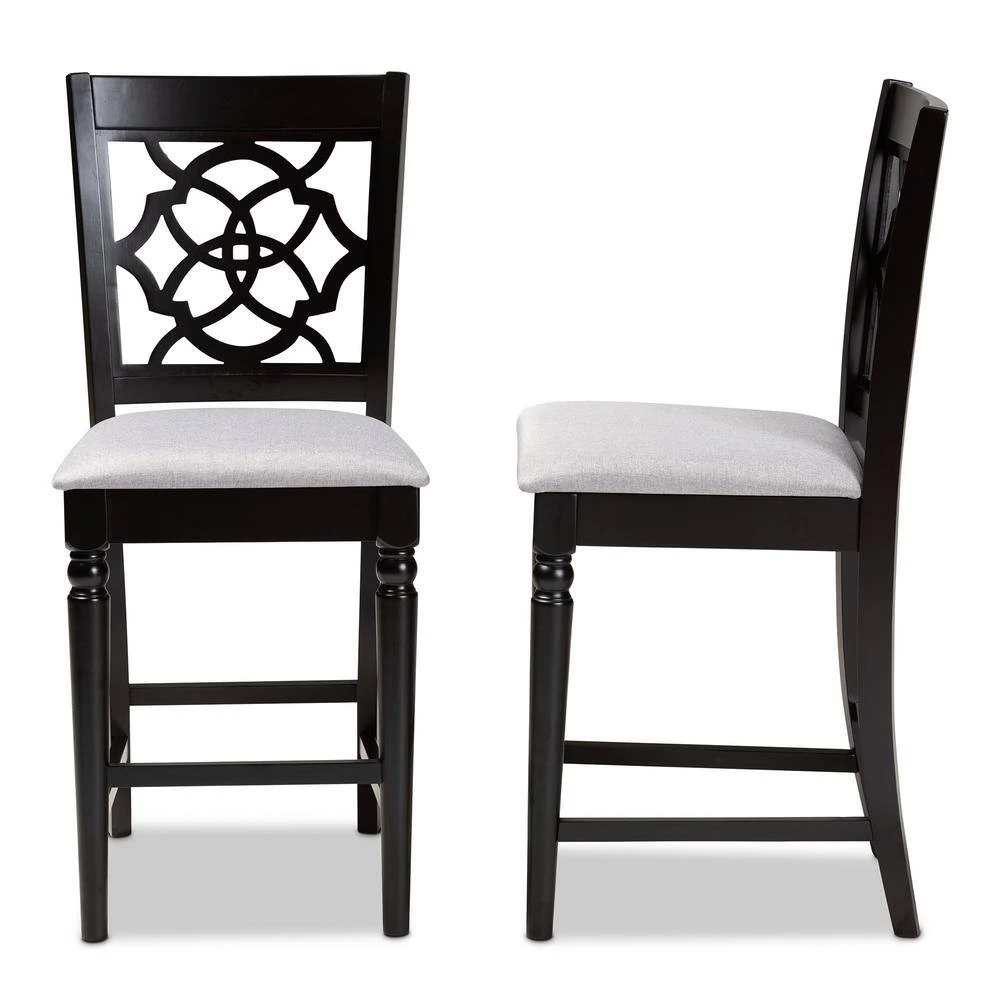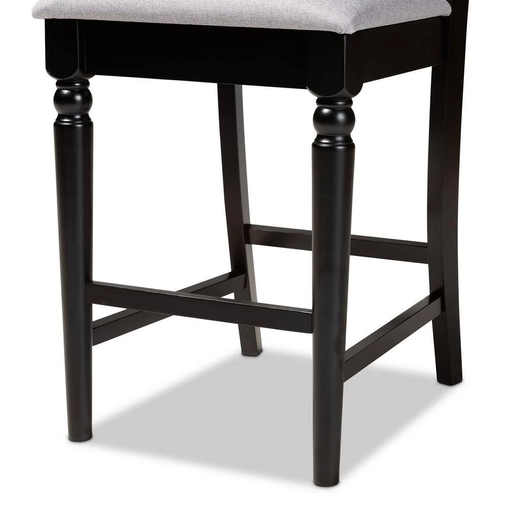 Redefine your dining space with the elegance and comfort of the Arden counter stool. This solid oak wood chair displays a sleek espresso brown finish that complements the light polyester fabric upholstery. Padded with foam for the utmost comfort as you enjoy long dinners, the Arden features a striking cut-out back for enhanced visual appeal. Ball turned legs add a classic, refined touch. Constructed at counter height, the Arden is suitable for use with pub tables and kitchen counters. The Arden counter stool is made in Malaysia and requires assembly.