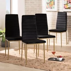 The Armand dining chair brings cool vibes to your space with its sleek, minimalist design. Made in China, this chair is comprised of a sturdy wood and metal frame padded with plush foam and upholstered in rich velvet fabric. Its gently arched backrest features channel tufting for a clean, contemporary display that accentuates the lush hues of the velvet. Requiring assembly, the Armand rests upon gold finished metal legs for excellent stability and support that completes the glamorous yet streamlined design of the chair. Adding a grand, executive look to any private or public setting, the Armand dining chair is an outstanding addition to any space.