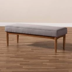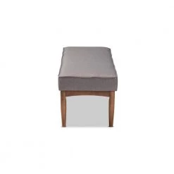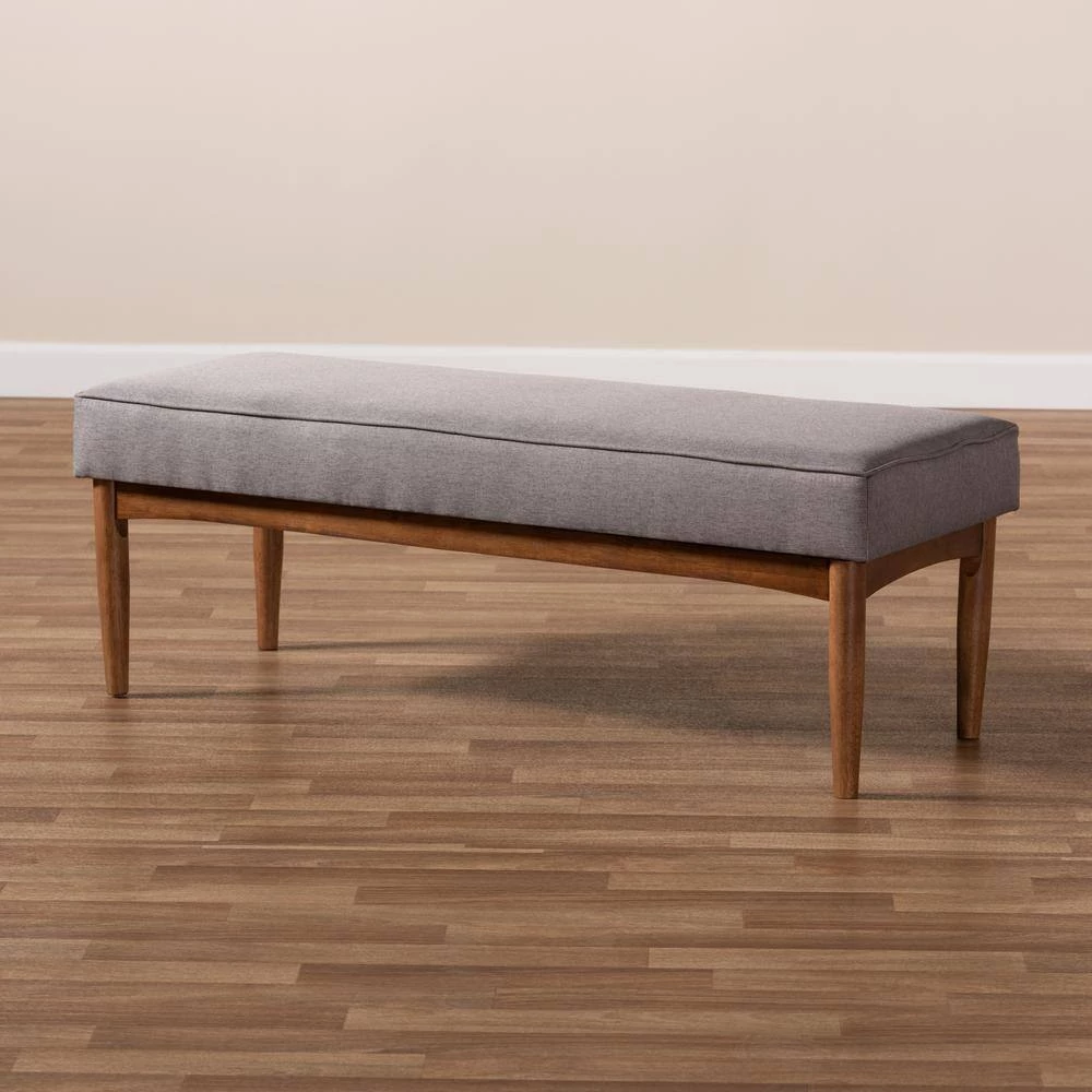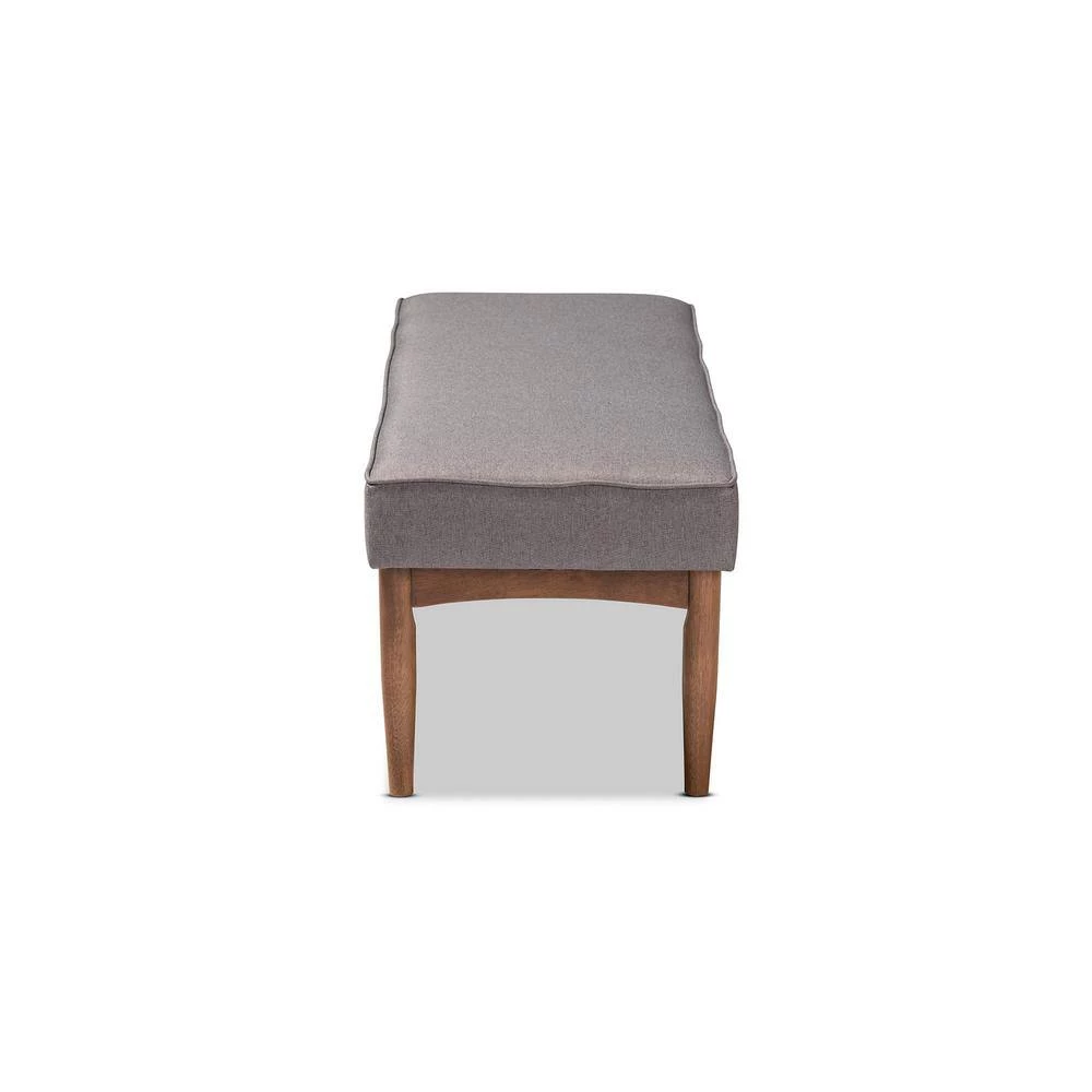 Enjoy weekend brunches and casual dinners with the Arvid dining bench. Constructed from wood in a walnut brown finish, the Arvid is upholstered in a soft, grey polyester fabric that is easy to coordinate with a wide range of color palettes. Inspired by stylish mid-century modern design, the bench showcases tapered legs. Combine this bench with the other pieces in the Arvid collection to create a cozy dining nook. The Arvid dining bench is made in Malaysia and requires assembly.