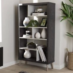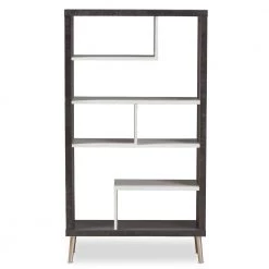 The trendy concrete optics go extravagantly through the living world and rewrite the fashion story. In addition to the trendy look, the Atlantic display shelf has a maximum of storage space, presenting your decorative items stylishly. Constructed of engineered wood with two-tone finishing in concrete and sycamore white, the Atlantic display shelf features open compartments for organization. Made in Malaysia, the shelf requires assembly.