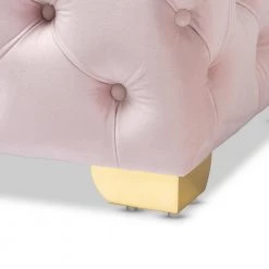 Add a glamourous accent to any space with the Avara ottoman. This plywood ottoman is upholstered in a sumptuous velvet fabric that displays a subtle sheen. All-over button tufting and lustrous gold-finished metal legs elevate the Avara to new heights of glamour. Use this versatile piece as a footstool or as extra seating for guests. The Avara ottoman is made in China and will arrive fully assembled.
