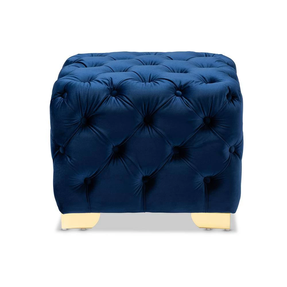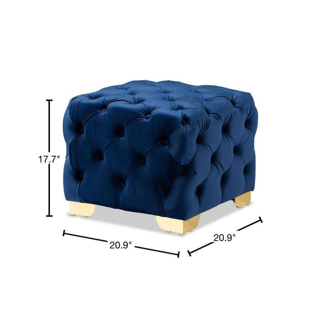 Add a glamourous accent to any space with the Avara ottoman. This plywood ottoman is upholstered in a sumptuous velvet fabric that displays a subtle sheen. All-over button tufting and lustrous gold-finished metal legs elevate the Avara to new heights of glamour. Use this versatile piece as a footstool or as extra seating for guests. The Avara ottoman is made in China and will arrive fully assembled.