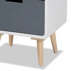 A beautiful execution of modern minimalism, the Bairn storage cabinet brings sophisticated storage to any space. Made in China, this cabinet is crafted from sturdy wood. Three drawers featuring cut-out handles offer ample space to organize busy areas of your home in sleek, streamlined design. Requiring assembly, the Bairn utilizes angled legs for excellent stability and support that add a charming, mid-century touch. A fantastic addition that blends well with modern layouts, the Bairn storage cabinet is sure to leave an impression.