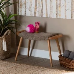 The petite yet cozy design of the Banner accent bench gives a charming, mid-century touch to your space. Made in China, this handy piece is comprised of a sturdy wood frame upholstered in smooth fabric. Its curved seat provides ergonomic comfort while convenient handles on the sides of the bench allow for easy reorganization. Requiring assembly, the Banner features angled legs for excellent stability and support that lends a retro feel. Compact yet expressive, the Banner accent bench enriches any space.