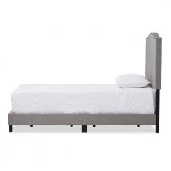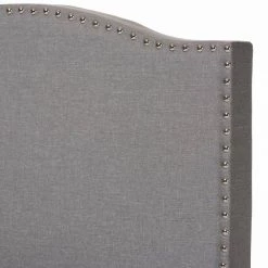 Upholstered furniture is an easy yet stylish way to add a touch of luxury to your kid’s bedroom or playroom. Benjamin grey fabric upholstered twin size bed features an arched headboard with large silver nail heads trim around the edges of the headboard creating a contemporary and luxury feel in the bedroom. The bed is fully upholstered in grey fabric. Heavily padded with foam, the headboard provides a safe shelter to your kids, ensuring them the whole night sleep without bumping on the hard headboard. Constructed with CARB-compliant solid rubberwood and MDF slats, the bed frame ensures you a piece of mind on the safety issue in regard to lead emission. Made in Malaysia, this twin size toddler bed or teen’s bed requires assembly.
