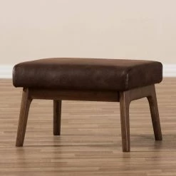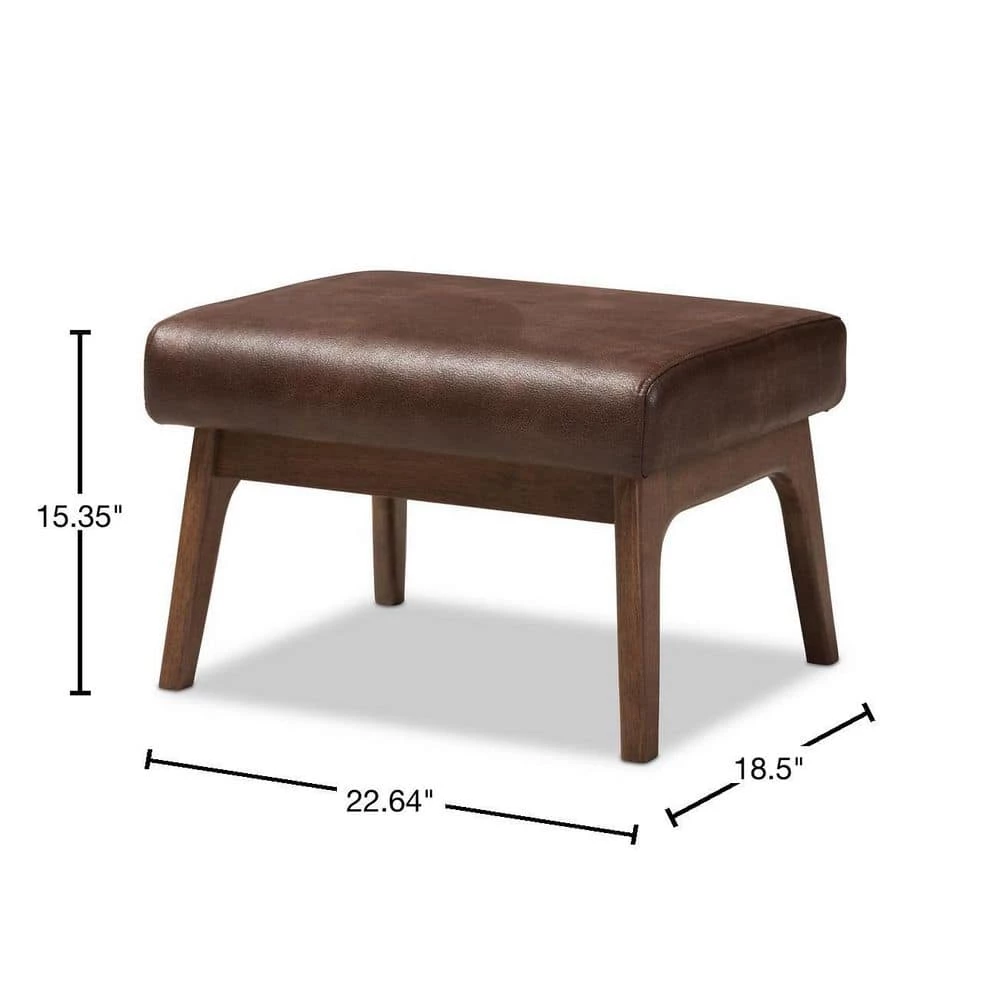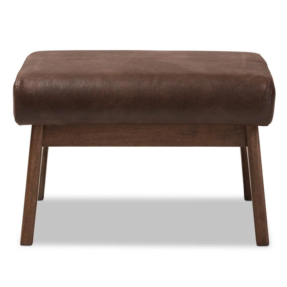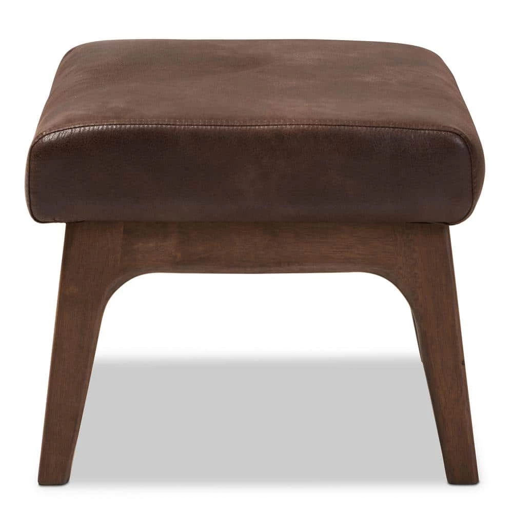 Welcome plush comfort into your home with the vintage style Bianca ottoman. Constructed of durable rubberwood for exceptional durability and stable comfort, the Bianca is upholstered in a distressed brown faux leather effect fabric to give it a vintage feel. Perfect for a modern or minimal interior, the Bianca features smooth angular solid wood frame in dark walnut finishing for a nod to mid-century modern design that exudes warmth. For a coordinated look, pair the ottoman with other pieces in the Bianca range, a stunning lounge set perfect for modern lounges and receptions. Made in Malaysia, the Bianca requires assembly.