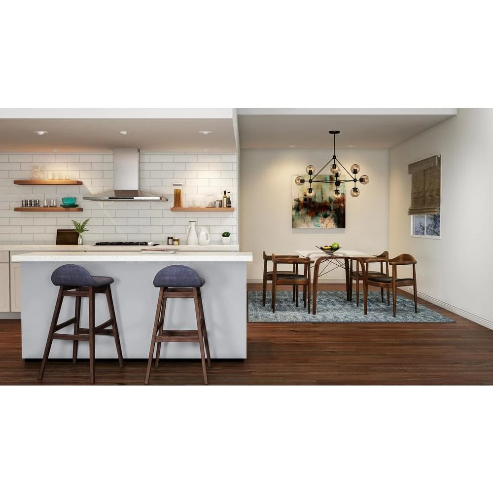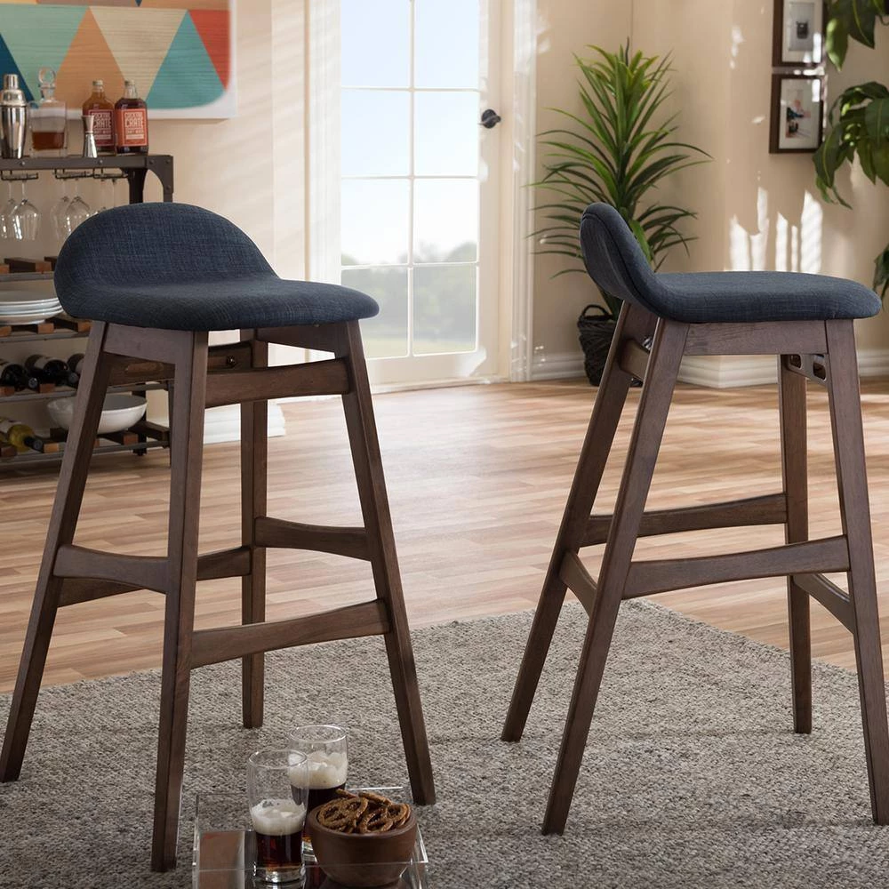 Upgrade your interior decor with the Baxton Studio Bloom Bar Stool. Coming with a wooden frame, this stool is easy to maintain and creates a homey, aesthetically appealing look. Featuring a modern style, it is great for revamping your interior design. It is designed without arms, so you can fit it under the counter or bar. It has a foot rest, so you have a place to comfortably put your feet while sitting. This blue stool adds a lively pop of color to any decor.