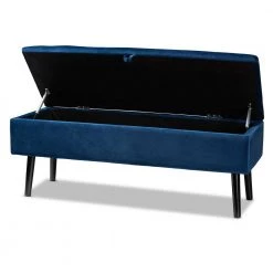 Stylish and practical, the Caine storage bench expands the potential of any interior space. Made in China, this bench is comprised of a sturdy wood frame padded with foam and upholstered in sumptuous velvet fabric. The button-tufted cushion opens to reveal a spacious storage compartment for extra pillows, blankets, and more. Requiring assembly, the Caine utilized angled legs for excellent stability and support while lending a traditional feel. A wonderful addition to a living room, bedroom, or entryway, the Caine storage bench enhances any space.