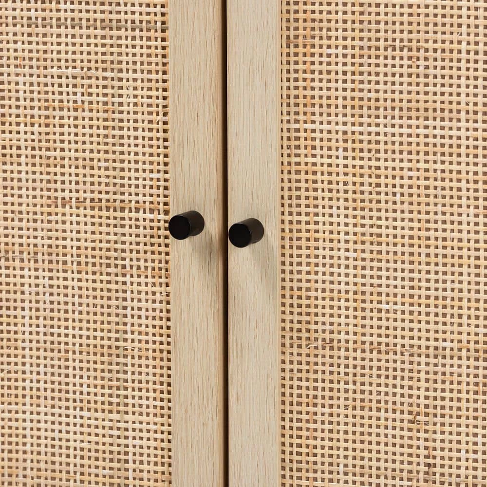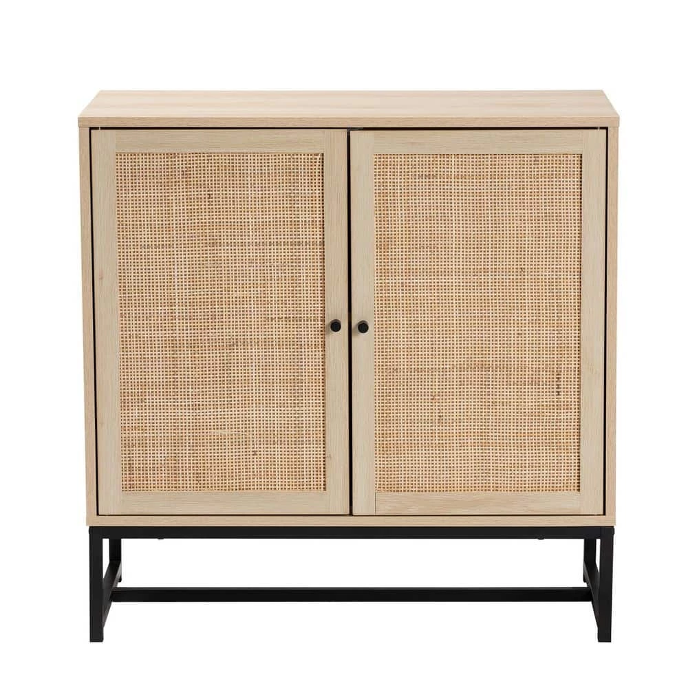 Saturated in the style of mid-century design, the Caterina cabinet caters for modern needs. Made in China, this exquisite piece consists of a solid metal frame fitted with wood. Two wide shelves behind the doors provide discreet storage space to organize and declutter busy areas of your home. The Caterina requires assembly and features woven natural rattan embellishments for an extra dose of retro flair. A handy addition that carries on the charm of traditional design, the Caterina cabinet elevates any arrangement. Due to the nature of the natural materials used in this product, it may have variations in areas such as, but not limited to, color, pattern, grain and texture. The hair-like strands of rattan/rattan-fiber are common due to nature of the material.