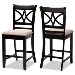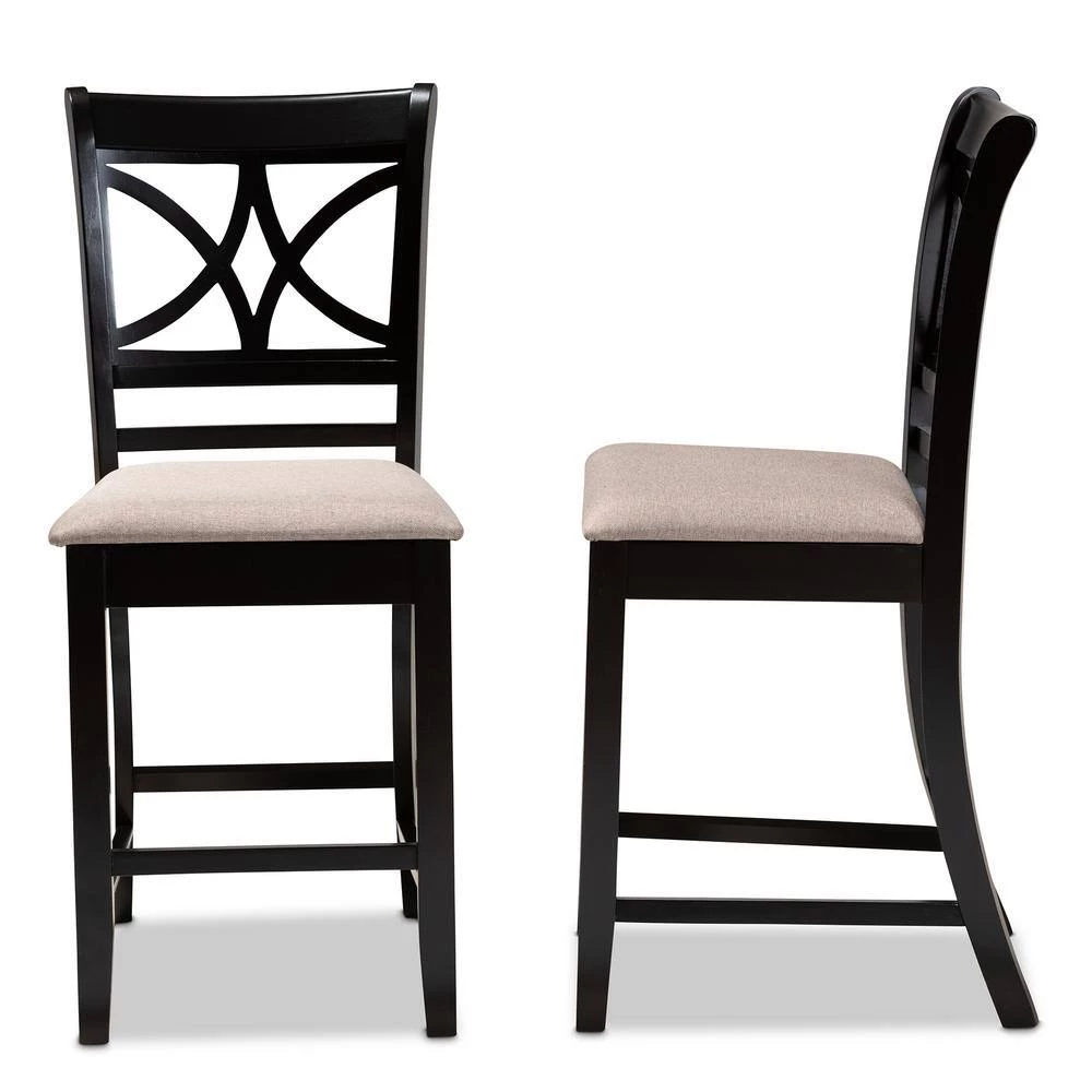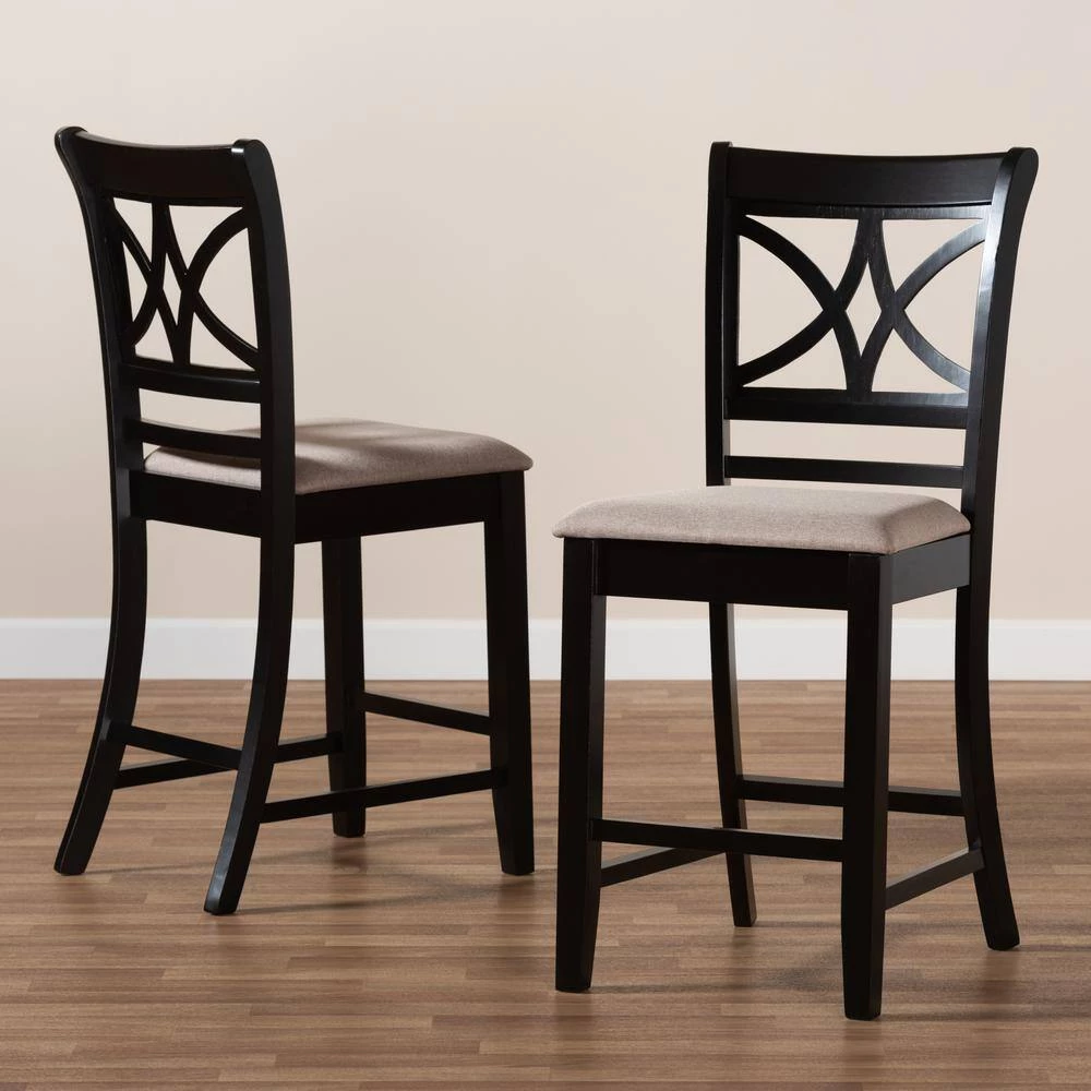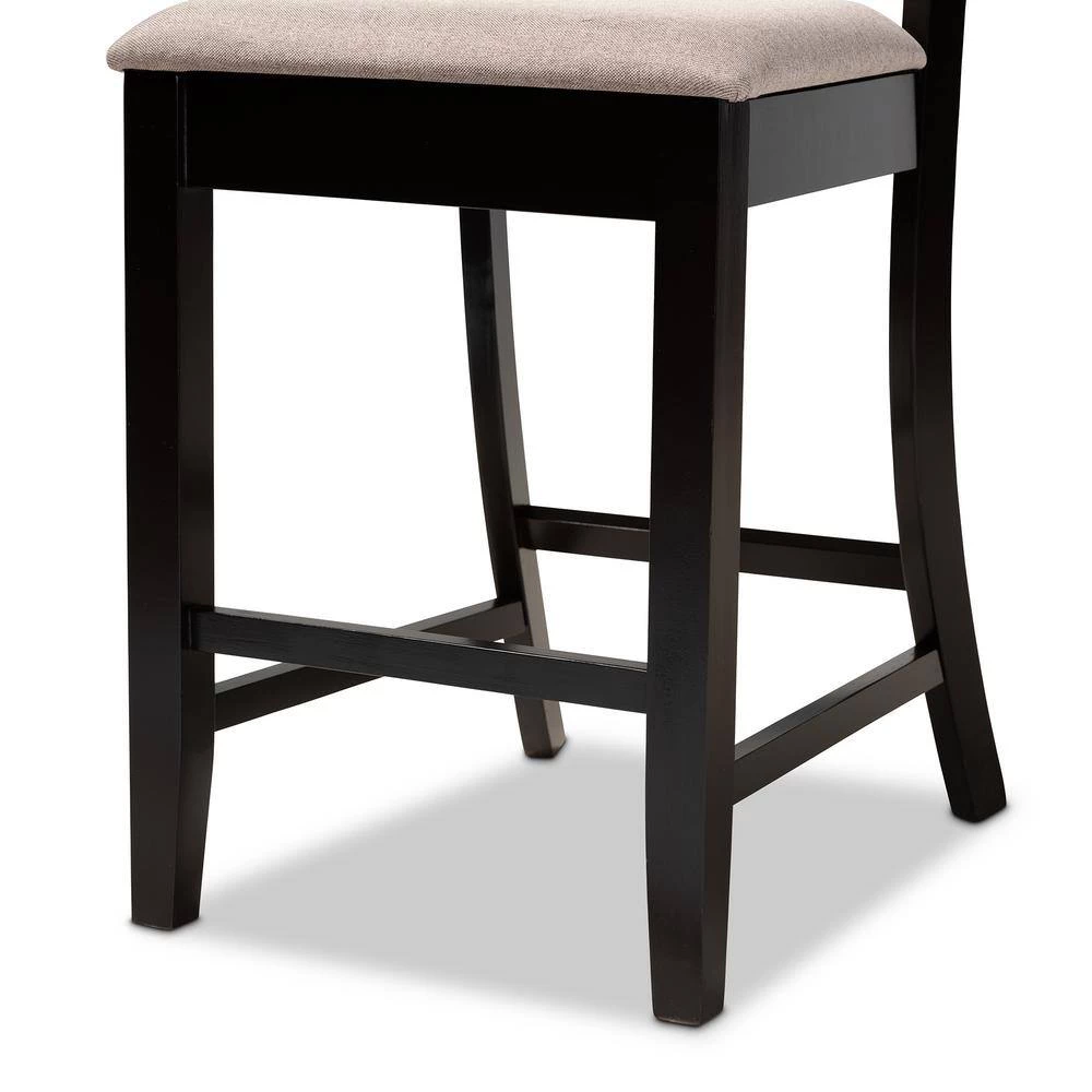 Modernize your dining room with the sophisticated design of the Chandler pub chair. Made in Malaysia, the Chandler pub chair is constructed from sturdy wood finished in an espresso brown. The Chandler requires assembly and is fitted with ergonomic footrests along with foam-padded seats upholstered in soft fabric for comfort. The unique cut-out design on the back of the chair allows the Chandler to stand out while allowing light to flow through the dining room. A perfect fit for both formal dinner parties and casual meals, the Chandler pub chair elevates any dining experience.