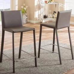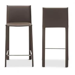 Update any space with the Baxton Studio Crawford Bar Stool. This stool has a modern style for a contemporary design. It is designed without arms, so you can tuck it under the table or bar. With a full back, it has a chair-like feel combined with the stylish appearance of a stool. It features a faux leather seat, adding a stylish touch. Designed with a wooden frame, this stool is easy to maintain and creates a homey, visually appealing look. This brown stool is easy to match with the rest of your home decor.