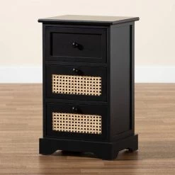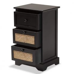 A beautiful piece of modern design with a retro feel, the Dacey storage cabinet elevates any interior layout. Made in China, this handy piece is comprised of a sturdy wood frame accented with rattan. Three drawers offer storage to organize your home while woven rattan drawer faces produce an atmosphere of warmth. Requiring minor assembly, the Dacey features round drawer knobs and inset paneling for a striking texture and depth. With excellent convenience in a remarkable design, the Dacey storage chest enhances any space.
