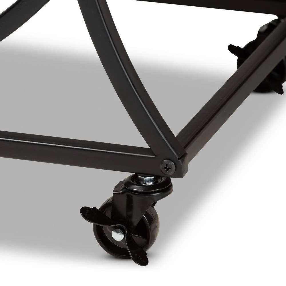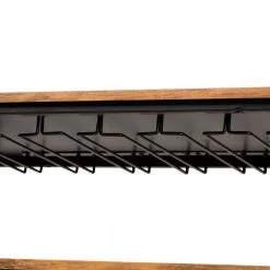 Enhance your space with the industrial warmth and character of the vintage inspired Dania wine cart. Made in China, the Dania is comprised of a black finished metal frame fitted with two walnut brown finished wood shelves. The built-in wine rack holds 15 bottles of your finest wines, while the stemware rack provides secure storage for glasses. Requiring assembly, the Dania is also fitted with wheel casters to provide smooth mobility. A chic and functional wine storage solution, the Dania wine cart easily upgrades the modern home.