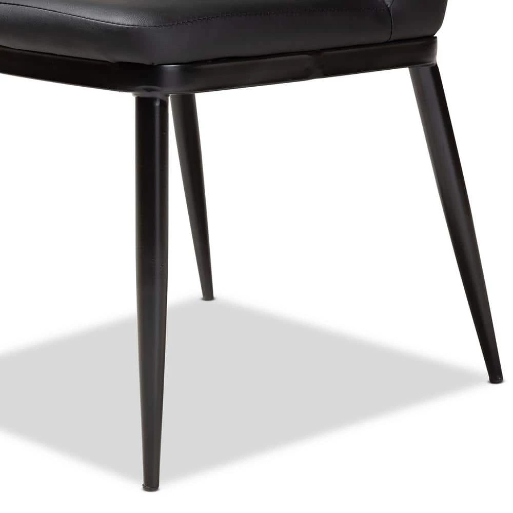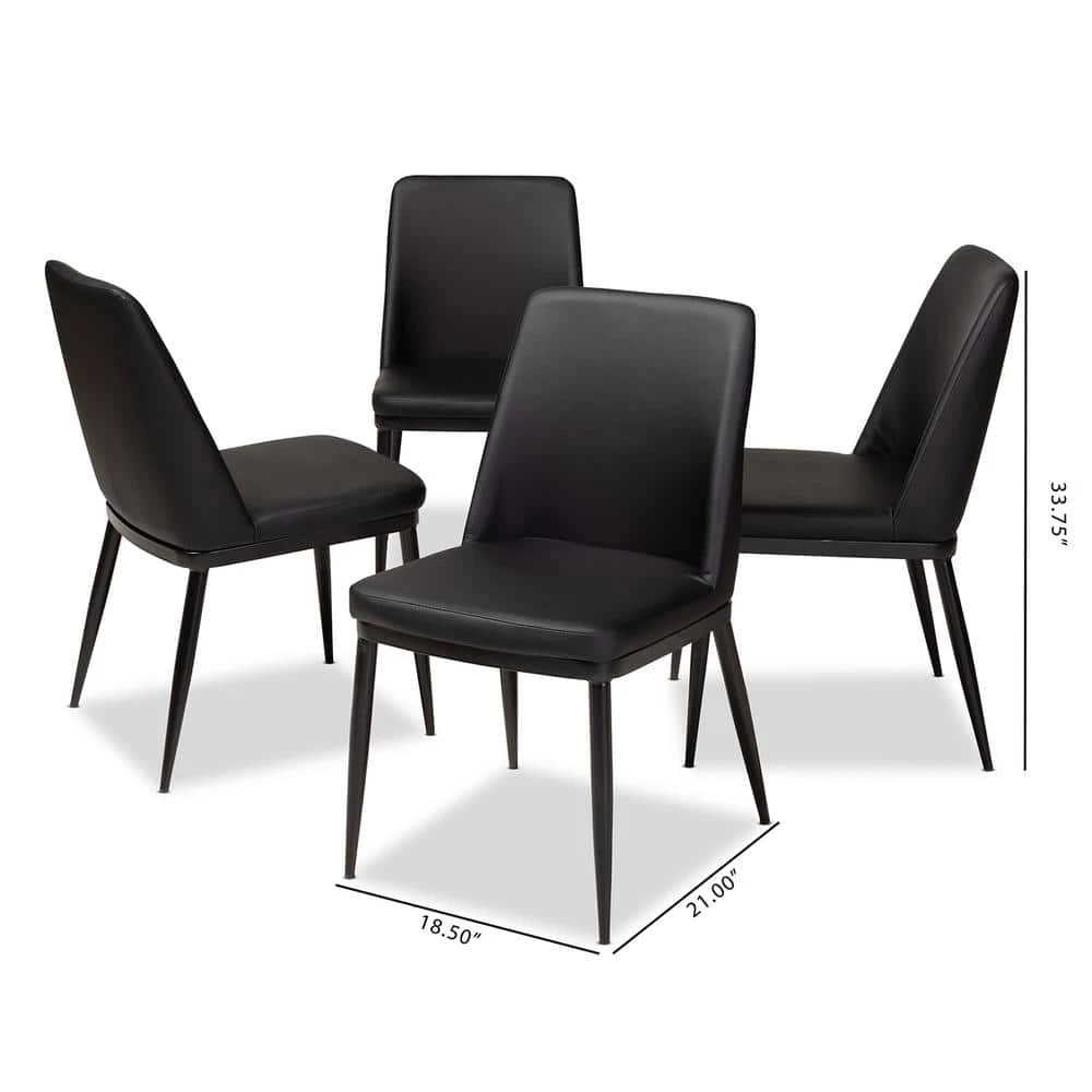 The simple Darcell dining chair is a classic example of minimalism. The modern and contemporary-inspired design is dynamic and versatile. The Darcell features black faux-leather upholstery and sturdy, metal legs finished in black. The chairback is slightly curved to promote comfort. The Darcell will be easy to coordinate with a broad range of decor, making it easy to add as seating to your dining room, reception area, shared spaces, or even your entryway. Made in China, the Darcell requires assembly.