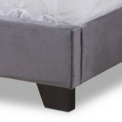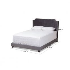 Indulge your sophisticated tastes with the Darcy bed. The luxe and glamour-inspired design of the bed is evident in its eye-catching details. The Darcy’s frame is built to last with solid rubberwood and engineered wood. The frame and sumptuous headboard are upholstered in velvet upholstery. The foam-padded headboard features a chrome finished nail head trim, adding yet another element of luxury to the Darcy. This bed will instantly upgrade the look of your bedroom or guest room. The Darcy is made for use with a mattress and box spring. Made in Malaysia, the Darcy requires assembly.