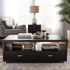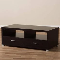 Impress all your guests with the Baxton Studio Derwent Coffee Table. With a modern style, this coffee table will serve as a contemporary piece of furniture that fits with any room. It has a wooden construction, so you can enhance your home with a timeless look and natural beauty. Featuring a drawer, it will help you keep your space organized.