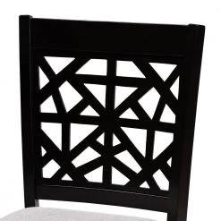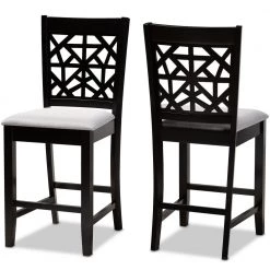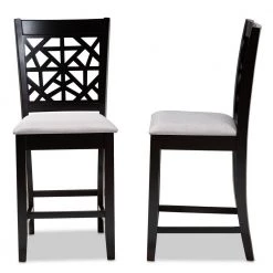 Intricate design unites with modern comfort in the Devon pub chair. Made in Malaysia, the Devon is constructed from strong wood in a classic square frame. The back of the chair features a unique cut-out design with sleek angles for a contemporary look. The Devon requires assembly and is fitted with ergonomic footrests along with foam-padded seats upholstered in soft fabric for comfort. A striking espresso brown finish on the wood brilliantly complements the lighter tone of the fabric, allowing the Devon to stand out and play a central role in the dining room or kitchen.