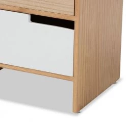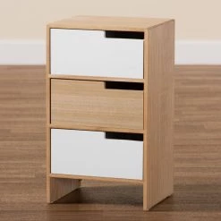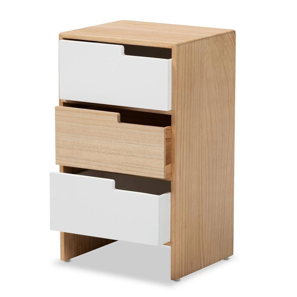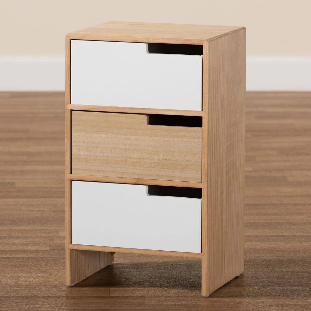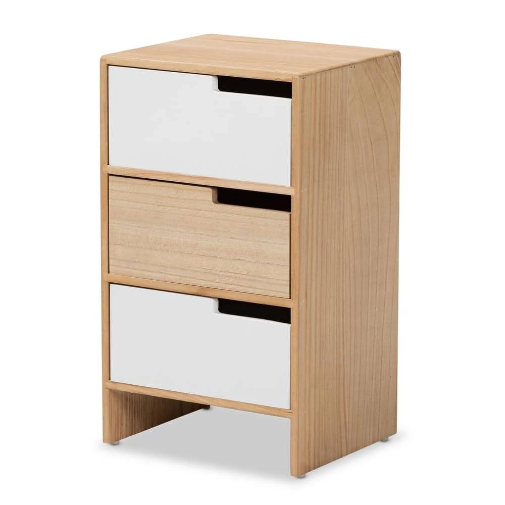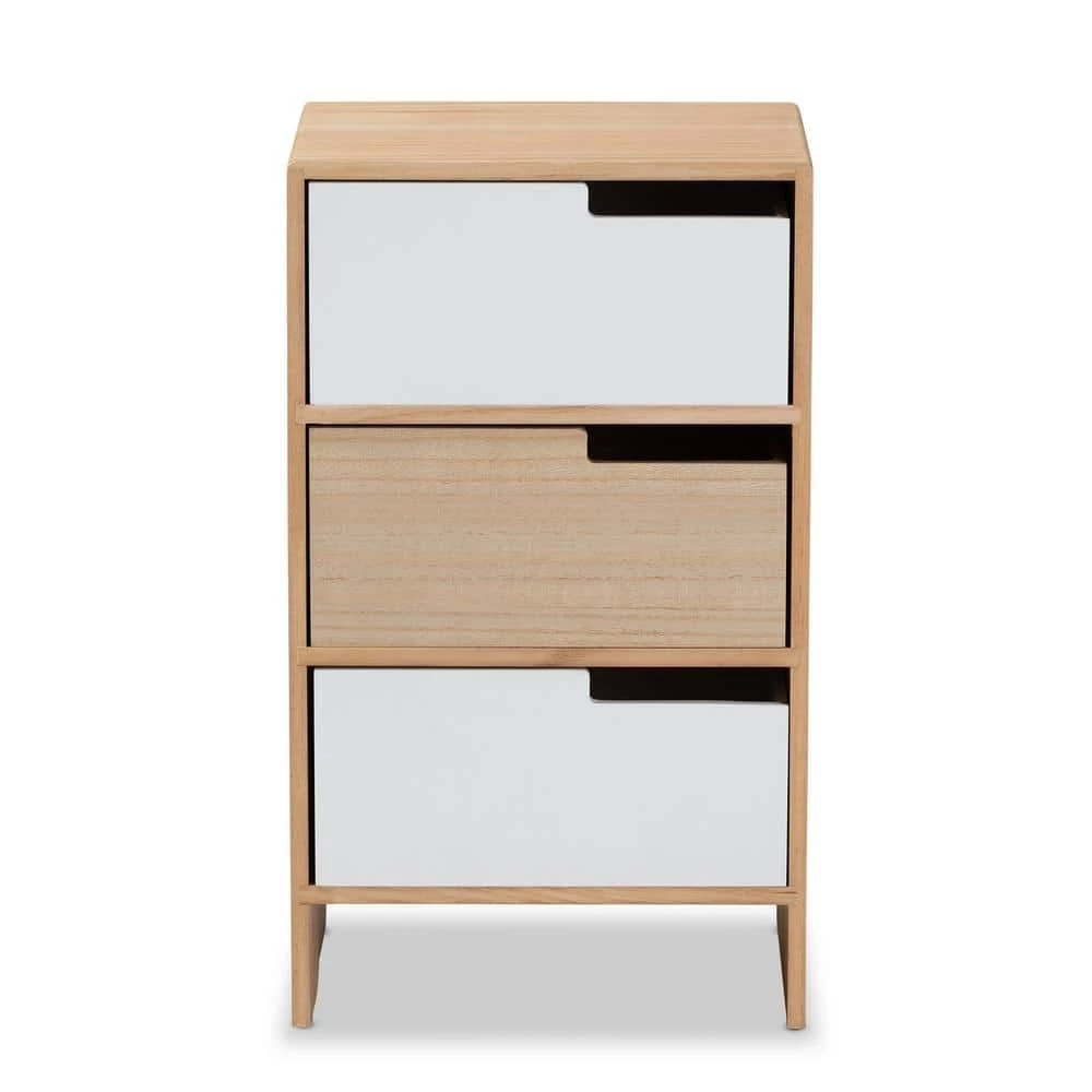 A sleek display of modern design, the Eben storage cabinet is sure to leave an impact. Made in China, this cabinet is crafted from sturdy wood. Three drawers offer convenient storage space and create a sophisticated arrangement in busy areas of your home. Comes fulle assembled, the Eben features cut-out handles for a sleek display of modern geometry. An attractive and efficient addition, the Eben storage cabinet transforms any space.