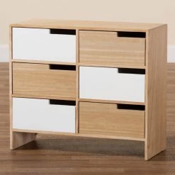 A sleek display of modern design, the Eben storage cabinet is sure to leave an impact. Made in China, this cabinet is crafted from sturdy wood. Six drawers offer ample storage space and create a resourceful arrangement in busy areas of your home. Comes fulle assembled, the Eben features cut-out handles for a sleek display of modern geometry. An attractive and efficient addition, the Eben storage cabinet transforms any space.