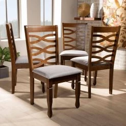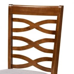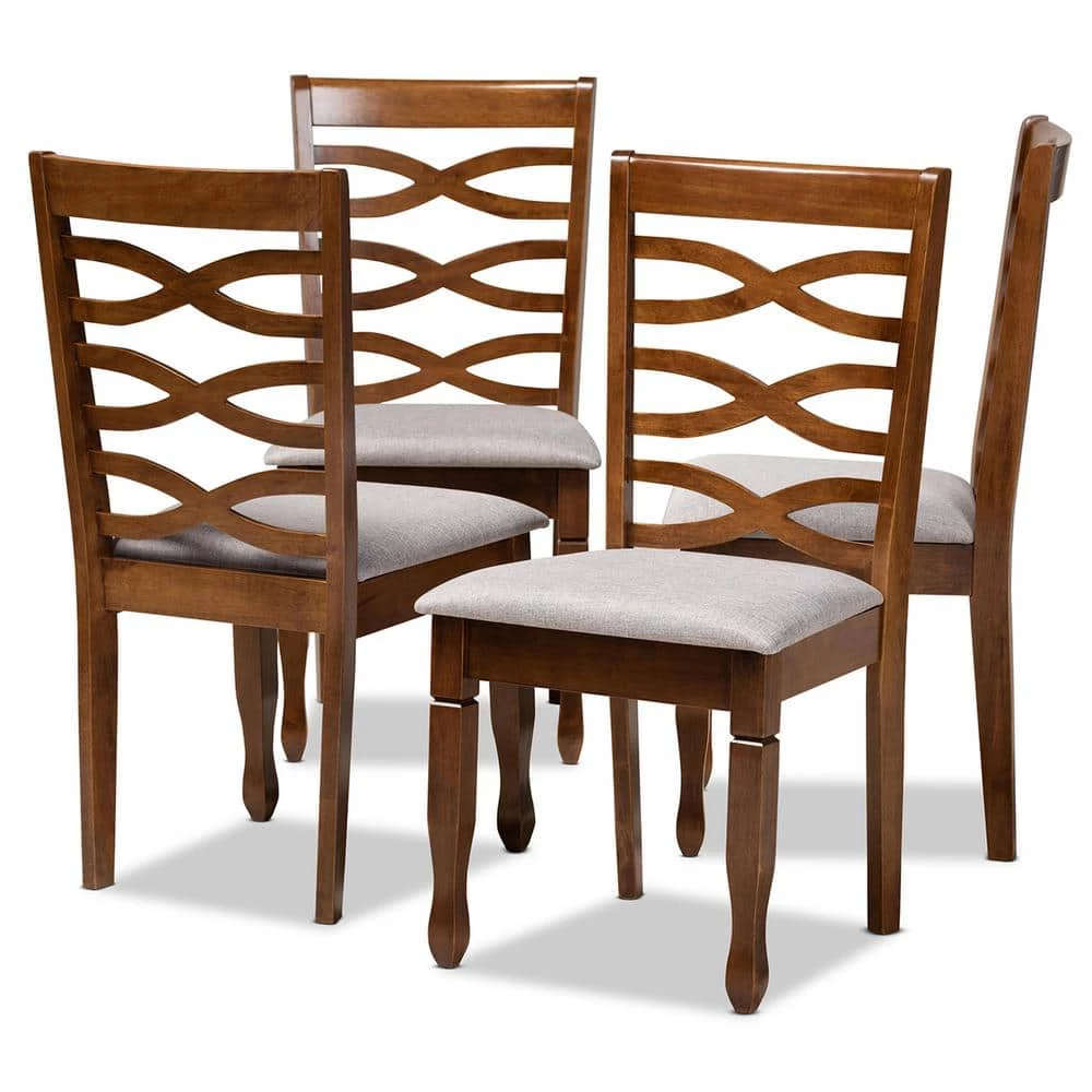Sophisticated design joins modern comfort in the Elijah dining chair. Made in Malaysia, the Elijah is constructed from sturdy wood in a bold frame. The dining chair balances form and function with a unique cut-out design on its back and a soft, foam-padded seat for comfort. This piece requires assembly and showcases grey fabric upholstery that complements the walnut brown finish on the wood. Turned legs give the Elijah dining chair a classic touch, making it an excellent addition to any dining space.
