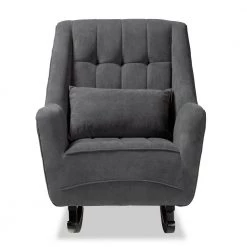 Smooth comfort meets chic, modern geometry with the Elisa rocking chair. Made in China, this chair is comprised of a sturdy wood frame padded with layers of foam and upholstered in luscious velvet fabric. Biscuit tufting on the backrest creates a soothing embrace while ergonomic armrests encourage you to relax and unwind. Requiring assembly, the Elisa features piping details to accentuate its smooth silhouette. A stylish display with plush comfort, the Elisa rocking chair is a wonderful addition to any space.