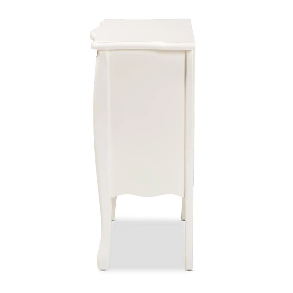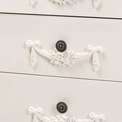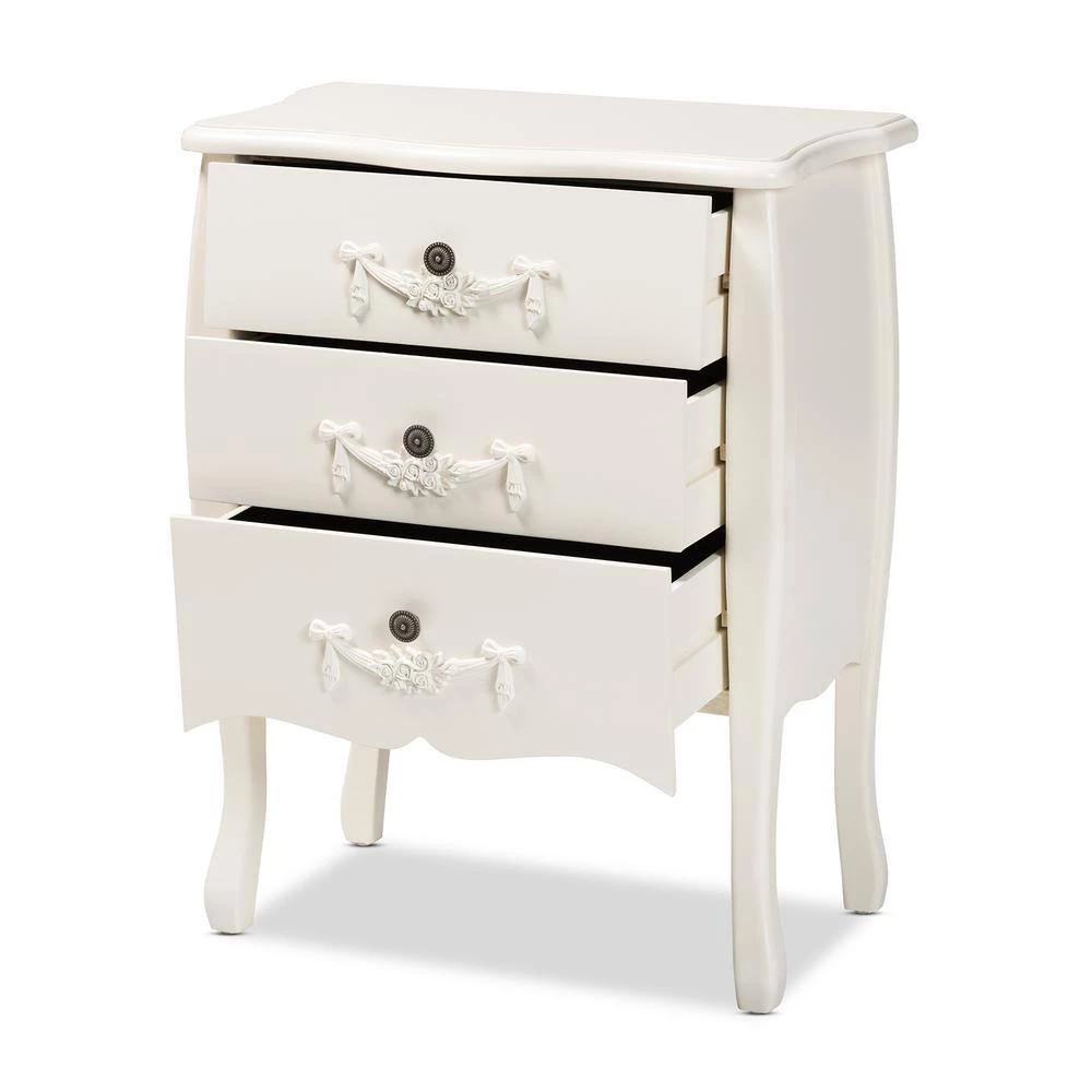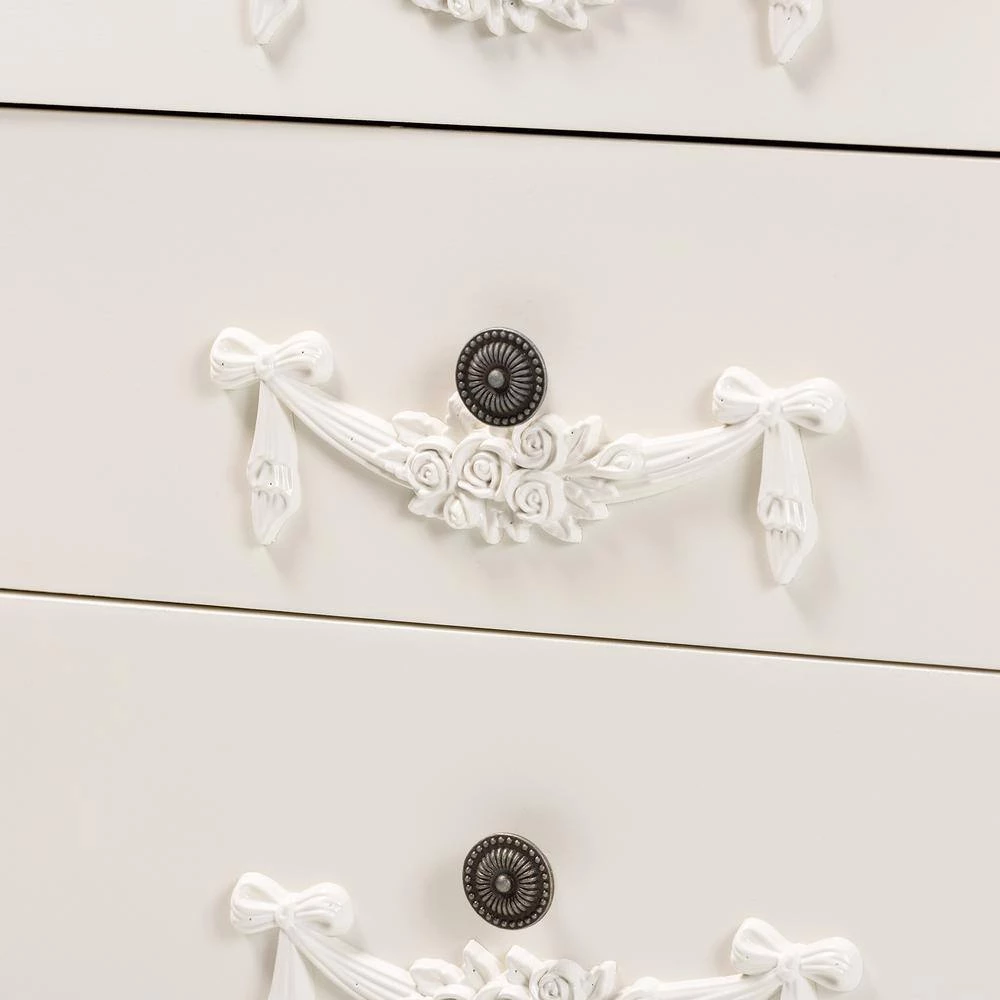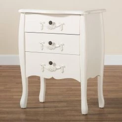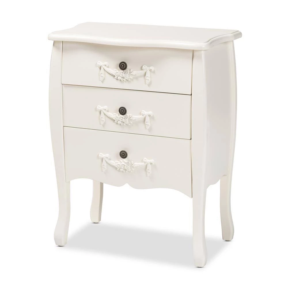 Uplift the character of busy rooms with the timeless style of the Eliya storage cabinet. Made in China, this exquisite piece is comprised of a solid wood frame embellished with metal drawer knobs. 3-drawers provide ample storage space to accommodate the needs of any arrangement. The Eliya will arrive fully assembled and features cabriole legs for excellent stability and support in elegant style. Floral moldings add a graceful touch, making the Eliya storage cabinet an enchanting addition to any space.