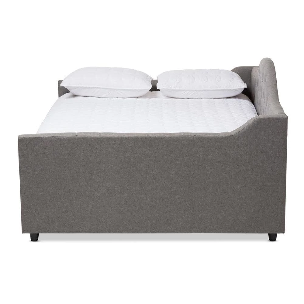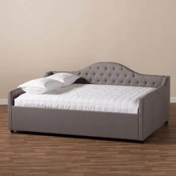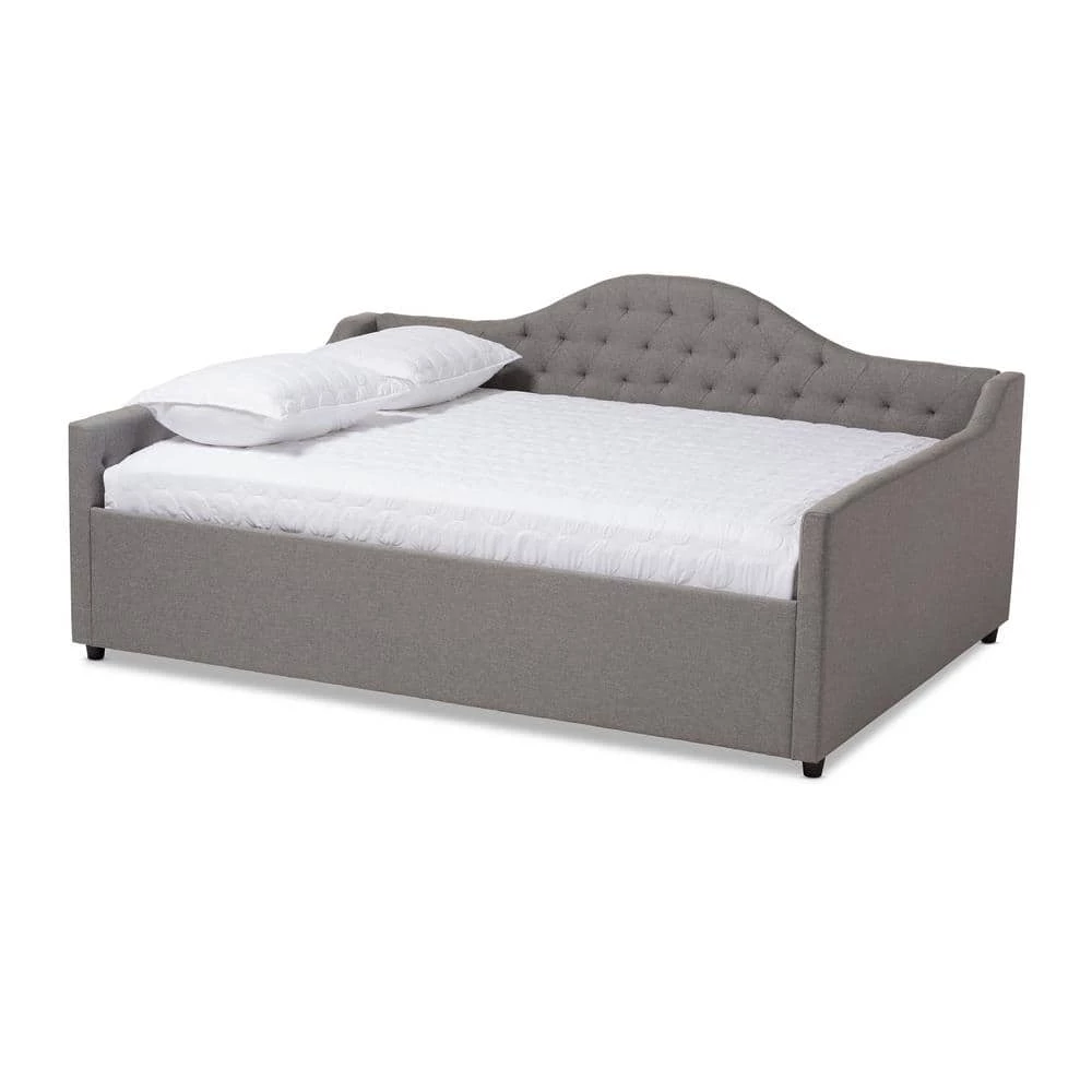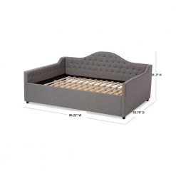 The softly sloping silhouette of the eliza queen size daybed gives it a chic, timeless appeal. The bed’s versatility comes from its modern and contemporary-inspired design, which is showcased in the curved headboard and sloping armrests of the side panels. The eliza features button-tufting on the headboard and insides of the side panels, which are foam-padded and upholstered in grey fabric. The daybed can easily be coordinated with a wide range of decor, including coastal and glam styles. The daybed exudes a luxe, high-end look while providing you practical options for hosting guests and having sleepovers. Made in Malaysia the eliza requires assembly.