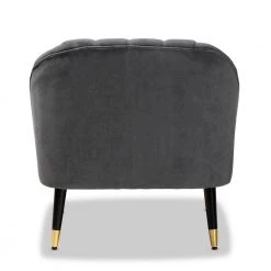 Take it easy with the plush comfort of the stunning Ellard accent chair. Made in China, this chair is comprised of a sturdy wood frame padded with foam and upholstered in sumptuous velvet fabric. Sleek channel tufting adorned with buttons create a soothing display while the wide seat encourages casual relaxation. Requiring assembly, the Ellard is supported by angled legs for stable support that lends an expressive silhouette. Exhibiting lavish comfort in chic, modern design, the Ellard accent chair is a fantastic addition to any space.
